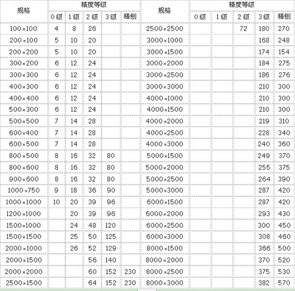 劃線平板精度:按**標(biāo)準(zhǔn)計(jì)量檢定規(guī)程執(zhí)行,分別為0、1、2、3四個等級。